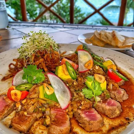 Zelune Luxury Lagoon Resort Bacalar - Adults Only serveert een gratis veganistisch ontbijt. Het restaurant Las Nubes van het hotel serveert een verscheidenheid aan veganistische maaltijden.